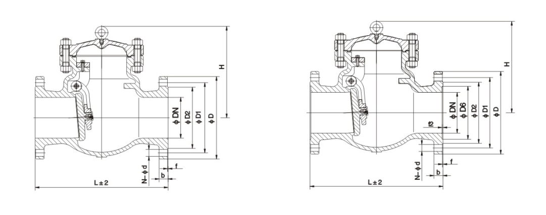 H44H、H44Y型旋启式止回阀是靠管路中介质本身的流动产生的力而自动开启和关闭的,属于一种自动阀门。止回阀用于管路系统,其主要作用是防止介质倒流、防止泵及其驱动电机机反转,以及容器内介质的泄放。止回阀还可用于给其中的压力可能升至超过主系统压力的辅助系统提供补给的管路上。